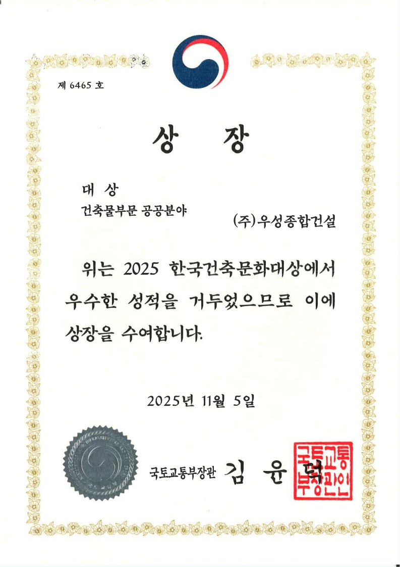 세상의 풍경을 바꾸는 건설미학으로 풍요로운 미래를 짓겠습니다.